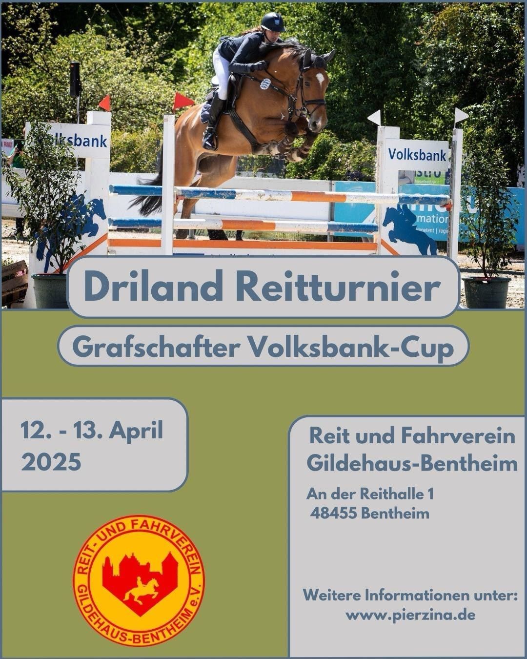 Gildehaus, 20. Maerz. Die Vorbereitungen laufen auf Hochtouren, denn am 12. und 13. April 2025 findet in Gildehaus das mit Spannung erwartete Reitturnier statt. Das diesjaehrige Driland-Turnier wird am Palmsonntag-Wochenende auf dem großen Reitplatz an der Reithalle ausgetragen. „Wir freuen uns sehr, in diesem Jahr wieder das Driland Turnier und den Volksbank Cup auszurichten“, sagt die Geschäftsführerin des Reit- und Fahrvereins Gildehaus, Leonie Tangenberg. „Unser Organisationsteam ist mit Herzblut bei den Vorbereitungen und wir freuen uns auf ein vielfältiges Springturnier.“ Das Turnier verspricht ein abwechslungsreiches Programm mit zahlreichen Wettbewerben für Reiterinnen und Reiter aller Leistungsklassen. Wer an den Wettbewerben teilnehmen möchte, findet alle nötigen Informationen auf der Webseite des Turnierservice‘ Pierzina unter www.pierzina.de. Hier sind die Ausschreibungen, Zeitpläne und Anmeldeformulare zu finden. Nennungsschluss ist Mittwoch, der 26. März. Der Reit- und Fahrverein Gildehaus lädt alle Reitsportbegeisterten herzlich ein, dieses besondere Ereignis zu besuchen und die spannenden Wettkämpfe mitzuerleben. Für das leibliche Wohl der Besucher ist selbstverständlich gesorgt.
